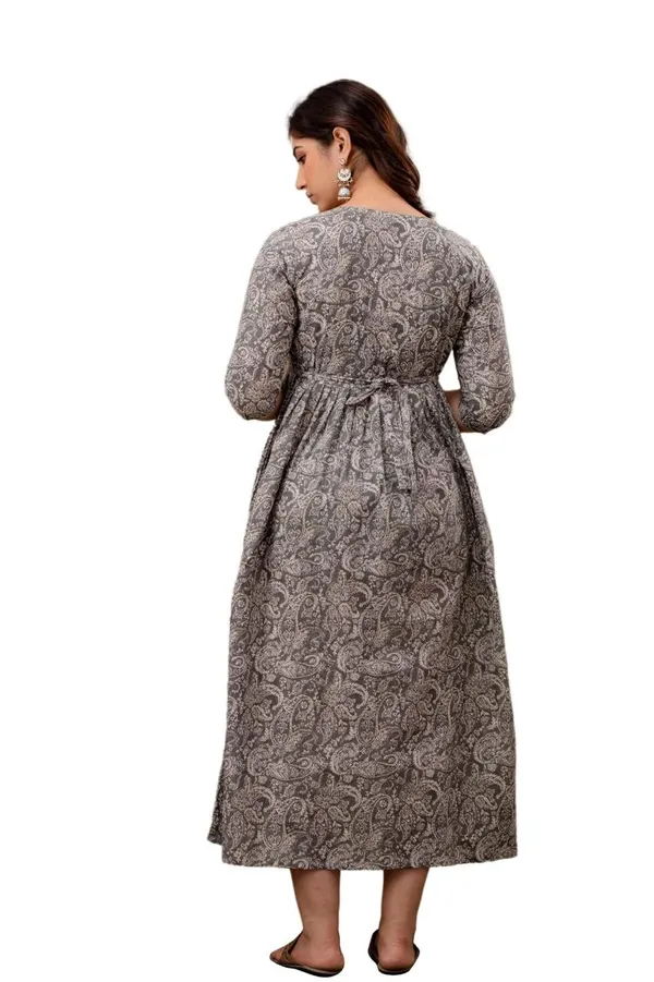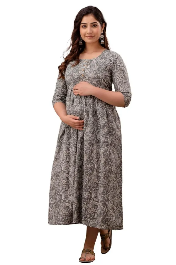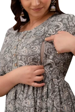 • Grey Cotton Maternity/Feeding Night Gown For Women