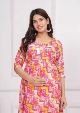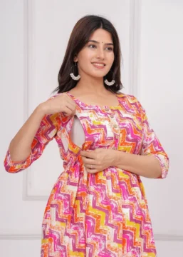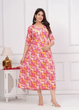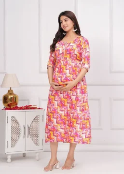 Introducing Our Ridhyara Maternity Gown – The Perfect Choice For Expectant Mothers Looking For Comfort And Style. This Beautifully Designed Gown Is Made With Soft, Breathable Fabric That Will Keep You Feeling Comfortable All Day Long. Whether You’Re Lounging At Home Or Attending A Special Event, This Gown Is Sure To Make You Feel Like A Million Bucks.