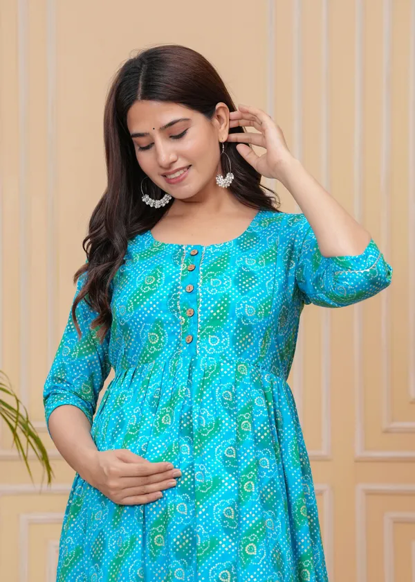 Introducing Our Ridhyara Maternity Gown – The Perfect Choice For Expectant Mothers Looking For Comfort And Style. This Beautifully Designed Gown Is Made With Soft, Breathable Fabric That Will Keep You Feeling Comfortable All Day Long. Whether You’Re Lounging At Home Or Attending A Special Event, This Gown Is Sure To Make You Feel Like A Million Bucks.