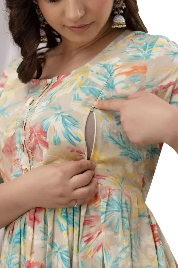 Multicolor Cotton Maternity/Feeding Night Gown For Women