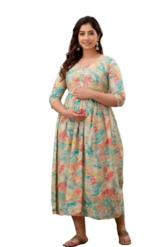 Introducing Our Ridhyara Maternity Gown – The Perfect Choice For Expectant Mothers Looking For Comfort And Style. This Beautifully Designed Gown Is Made With Soft, Breathable Fabric That Will Keep You Feeling Comfortable All Day Long. Whether You’Re Lounging At Home Or Attending A Special Event, This Gown Is Sure To Make You Feel Like A Million Bucks.