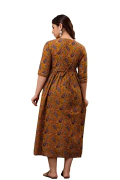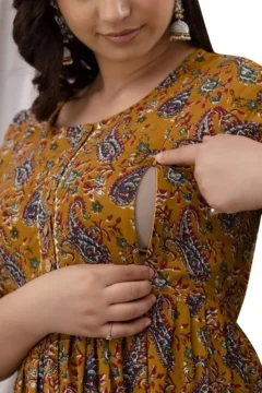 • Mustard Cotton Maternity/Feeding Night Gown For Women