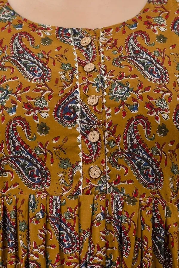 Home Straight Kurta Mustard Cotton Maternity/Feeding Night Gown For Women